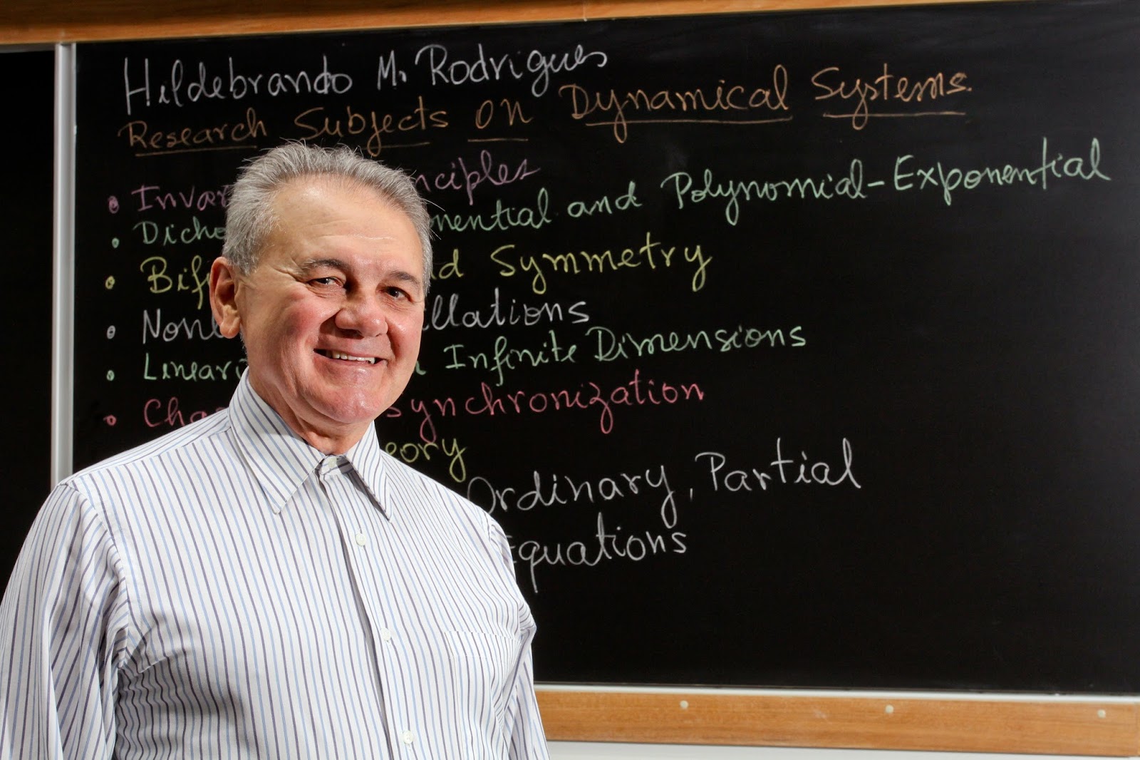 Hildebrando ressalta ainda que, a partir de um trabalho de colaboração com pesquisadores da área de engenharia elétrica, foram aprimorados os modelos empregados nessa área no Brasil. “Posso afirmar que os resultados mais bem-sucedidos para encontrar a estabilidade nesses sistemas de potência são do nosso grupo de pesquisa e podem ser utilizados em outras áreas do conhecimento”. O professor é um dos principais expoentes da área de equações diferenciais no Brasil. Ele contribuiu para o desenvolvimento e a consolidação desse campo de pesquisa no país. Em 2013, ao completar 70 anos, ele foi homenageado durante o Summer Meeting on Differential Equations, um dos mais importantes eventos do mundo na área de equações diferenciais. Realizado anualmente pelo ICMC desde 1996, o evento é promovido pelo grupo de Sistemas Dinâmicos Não Lineares do ICMC e conta com o apoio das principais agências de fomento à pesquisa do país.