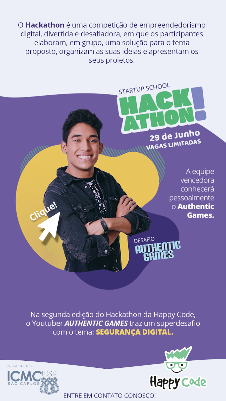 Quem disse que segurança digital não é papo de criança? Quem tem de 7 a 12 anos terá a oportunidade de mostrar que já está sintonizado com a era digital em um desafio de tecnologia que agitará o Instituto de Ciências Matemáticas e de Computação (ICMC) da USP, em São Carlos, no dia 29 de junho, sábado. É quando acontecerá a etapa local do Hackathon Authentic Games, que tem como objetivo incentivar novos talentos criativos e empreendedores da cultura digital, estimulando o desenvolvimento de soluções a partir de um desafio proposto.