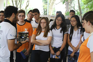 Após as apresentações, os visitantes participaram de uma mostra tecnológica, realizada no hiperespaço Gilberto Francisco Loibel, onde tiveram contato com alunos, professores e conheceram as pesquisas e grupos de extensão do ICMC. O Carro Robótico para Navegação Autônoma (CaRINA), o Laboratório de Ensino de Matemática, os grupos Warthog Robotics e Fellowship of the Game foram algumas das atrações. O estudante Victor Fuganholi, que veio da Escola Estadual Virgílio Capoani, de Lençóis Paulista, conseguiu esclarecer na visita as dúvidas que tinha sobre qual curso deveria prestar: engenharia elétrica ou engenharia de computação. Depois das orientações recebidas, decidiu pela segunda opção e agora sonha estudar no Instituto. “Consigo ver que as pessoas da USP são esforçadas, gostam de estudar e acredito que eu tenha esse perfil”, revela o adolescente.