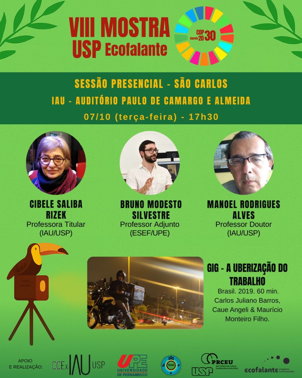 Neste contexto, o LEAUC convida para a exibição do documentário GIG – A Uberização do Trabalho (2019, 60 min), dirigido por Carlos Juliano Barros e Caue Angeli, que será apresentado no auditório do IAU USP, em São Carlos, no dia 07 de outubro (terça-feira), às 17h30.