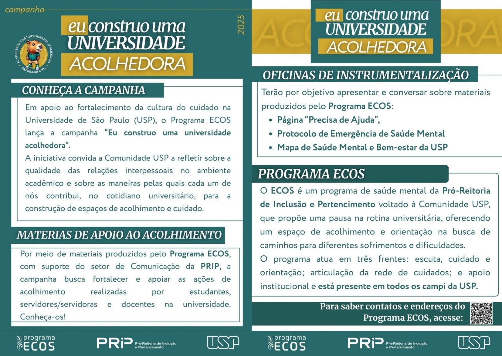 Em apoio ao fortalecimento da cultura do cuidado na USP, o Programa ECOS lança a campanha Eu construo uma universidade acolhedora.