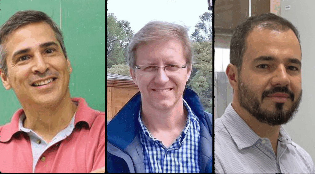Os professores André de Carvalho, Francisco Rodrigues e Moacir Ponti representam o ICMC entre os pesquisadores mais influentes do mundo, segundo ranking da Universidade de Stanford (Crédito da imagem: Arquivo pessoal)